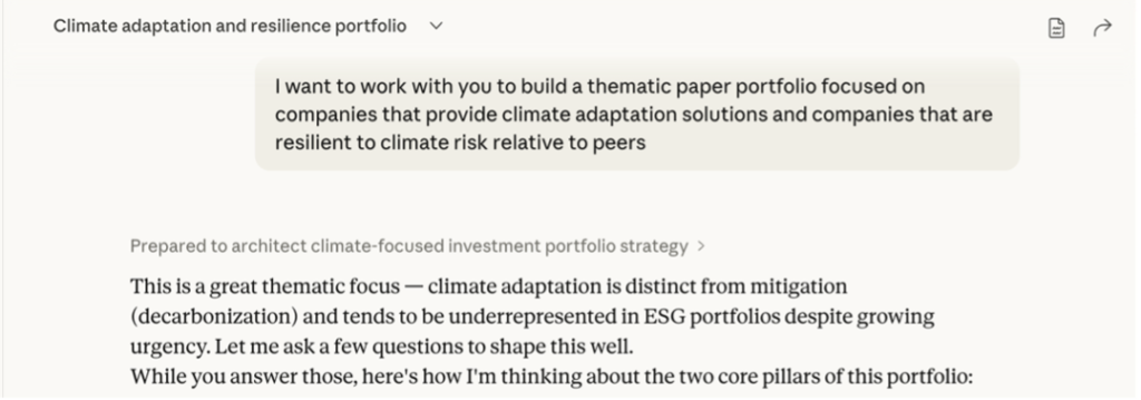 In my article last week on the use of AI in sustainable investing, I mentioned I was experimenting with paper portfolio building using Claude. On the first pass, I was blown away by the speed, sophistication and quality of the process and output.